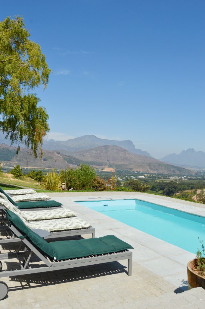 The private pool makes for the perfect retreat on a hot summer’s day. With unprecedented views of the Franschhoek valley. Guests can enjoy a chilled glass of Dieu Donne wines purchased from the nearby Dieu Donne Tasting Room.